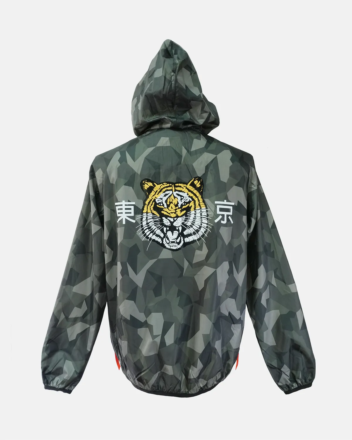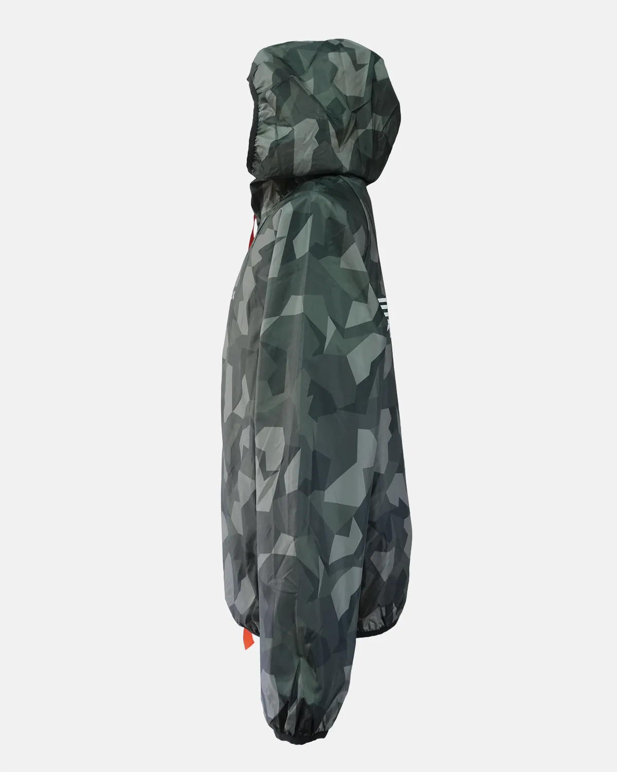 Men’s hooded sports jacket features a bold camouflage pattern with vibrant contrast color accents, making it ideal for outdoor activities. Lightweight and functional, it combines style and performance for active wear.