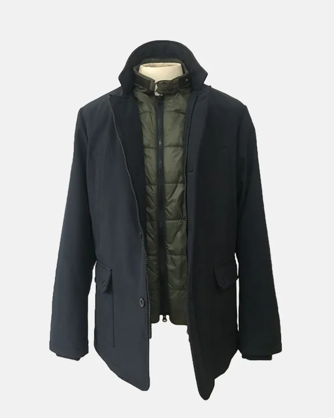 Winter 2pcs set Jacket. The outer is high density woven fabric Quality with a DWR( durable water repellent) finish, plus inside Nylon removable padded vest. Full length zip at outer & inside vest make the front warm and comfortable.