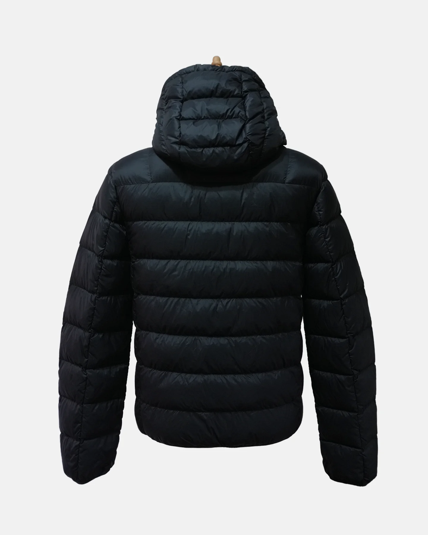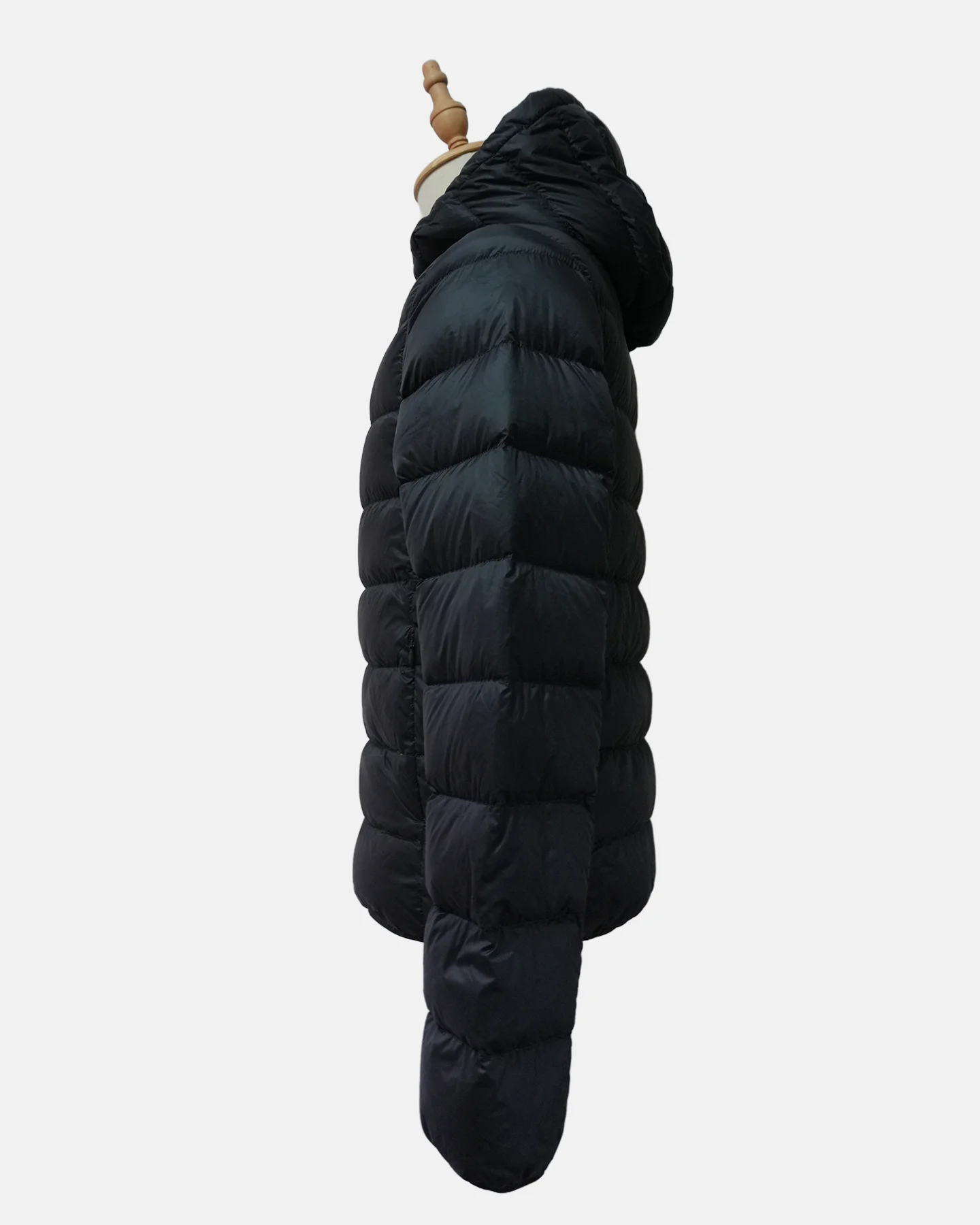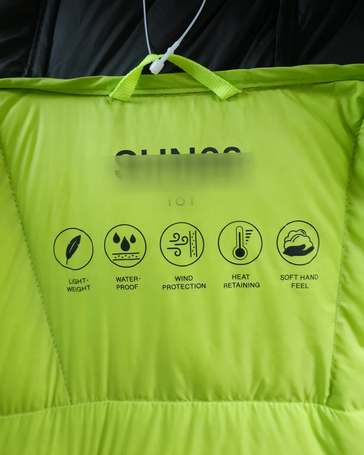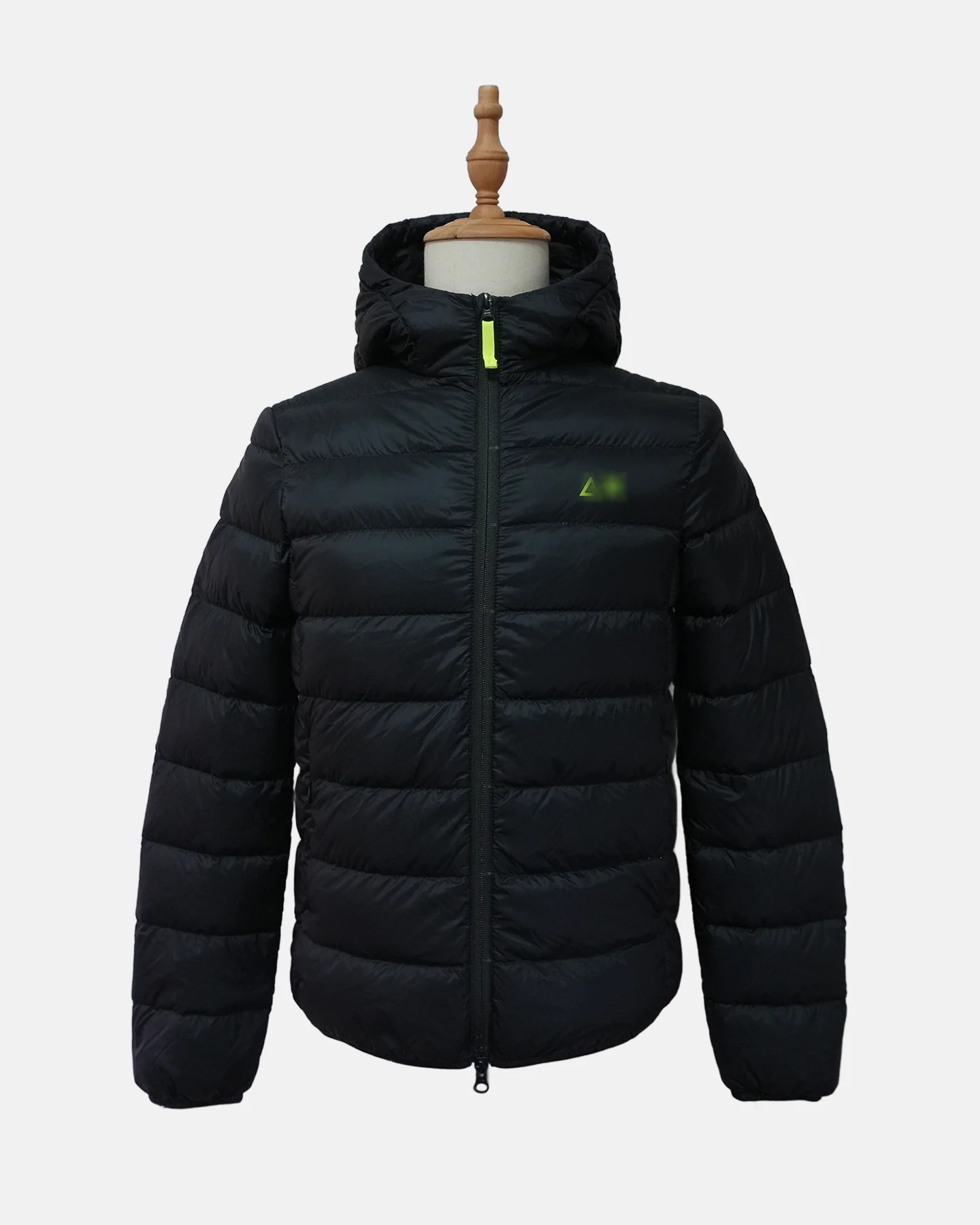 Teenage’s down jacket,super soft and comfortable, with fluorescent green contrasting color for the print on the front and the zipper loops. Elastic binding at hood & cuff.
